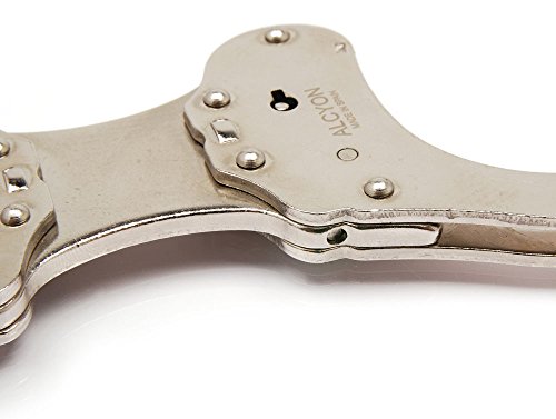 Aus K-67 Stahl gefertigt und wahlweise silberfarben vernickelt oder in Schwarz gehalten erweist sich die 5050 Handschelle von Alcyon als robustes Equipment, das den Belastungen des Alltags ebenso gewachsen ist wie Manipulationsversuchen. Das integrierte Double Lock System verhindert zudem, dass Verletzungen durch ein versehentliches Zusammenschieben wirksam verhindert. Zugleich wird das Risiko des Ablegens und der Fluchtversuche verringert. Die Sicherheit und Qualität des Modells 5050 entspricht den Anforderungen des National Institute of Justice. Service und Produkte des spanischen Herstellers sind nach ISO 9001-2008 akkreditiert. Hierauf ist also Verlass. Größe und Unterscheidung Zur besseren Unterscheidung, beispielsweise bei medizinischen Problemen, bietet Nordhandel als offizieller deutscher Händler silberne und schwarze Ausführungen an.