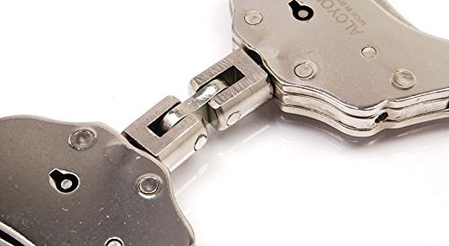 Aus K-70 Stahl gefertigt ist die Handschelle aus dem Hause Alcyon beständig gegen Krafteinwirkungen und sogar chemische Belastungen. Auch Verletzungen können auf diesem Weg vermieden werden. Passend sind die Handschellen von Alcyon für verhältnismäßig schmale und kräftige Handgelenke. Dafür sorgt der Innendurchmesser, der sich von 165 bis 200 Millimeter variabel einstellen lässt. Als offizieller deutsche Alcyon Händler bietet Nordhandel das Modell 5230 in vernickelt und Silberfarben sowie 5236 in Schwarz an.