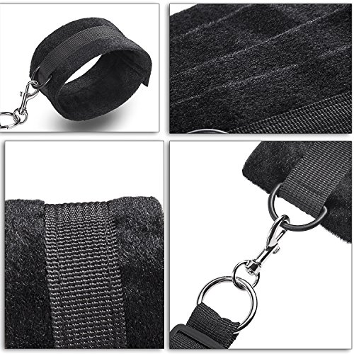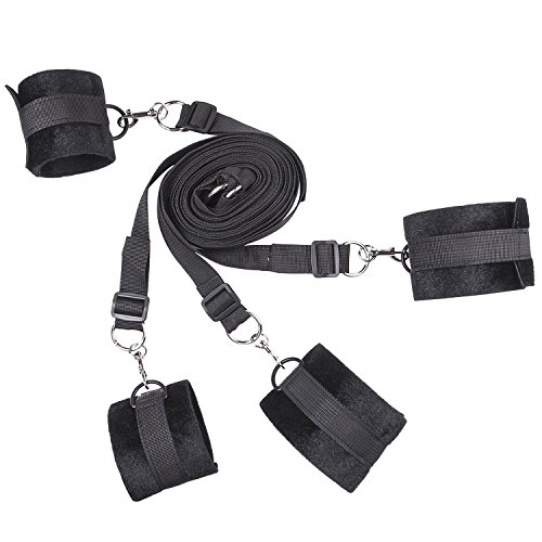Das Nylonband an der Oberseite des Bettes zur Mitte spannen. Über die Länge des gesamten Bettes spannen und es zwischen die Matratze legen. Das sollte wie der Buchstabe „I“ aussehen. Stellen Sie sicher, dass der Zentralstrahl in der Mitte des Bettes ist. (Es ist einfacher, wenn Sie einen Partner haben, der ihnen helfen kann. Wenn Sie Ihren Partner überraschen wollen, sollten Sie es alleine versuchen. Andernfalls sollten Sie auf jeden Fall Hilfe holen.)Klemmen Sie die Beschränkungen an Ort und Stelle, und es kann losgehen!Das Rückhaltesystem ist mit insgesamt vier Handschellen und Ketten ausgestattet, so dass Sie die Arme und Beine des Partners auf dem Bett festziehen können! Die Ärmel sind leicht für einen komfortablen und sicheren Sitz gepolstert. Sie können die Klettverschlüsse nutzen, damit Sie die Manschetten schnell und einfach entfernen können, wenn es nötig ist. Sie können, je nachdem, wie gut Sie und Ihr Partner sich kennen die Bondage anziehen oder lösen Sie die oberen und unteren Bänder.Und wenn Sie fertig sind, können Sie die Manschetten ganz einfach unter der Matratze verstauen. Es gibt einfacheren anderen Weg als mit der Augenbinde dem Partner die Kontrolle zu entziehen, denn dadurch wird ihm die Fähigkeit des Sehens entzogen. Ziehen Sie diese Augenbinde (All-In-One Größe) über Ihren Partner oder nutzen Sie die Augen Slaves. Lassen Sie Ihren Partner erraten, welches Spielzeug Sie wann und wo verwenden.Sie und Ihr Partner fühlen sich wohler mit diesen Bondage-Fesseln und haben mehr Spaß an BDSM-Aktivitäten, denn Sie können im anderen Stil Requisiten und Stellungen ausprobieren.Und vorallem: experimentieren. Mit ein wenig Phantasie und Kreativität, es ist nicht abzusehen, wohin Ihr Abenteuer führen wird.