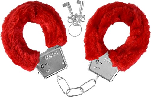 Handschellen aus Metall mit Plüsch-Fellbezug und zwei Schlüsseln. Die Handschellen verfügen über einen Sicherheitsmechanismus und sind daher auch ohne Schlüssel zu öffnen.